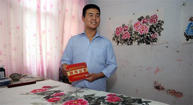 村民王明柱身患小儿麻痹症,妻子智商低于常人,家庭负担都压到他一个人身上,如今他爱上了绘画,不但收入大为提高,而且还在第十二届海峡两岸书画名家作品展中荣获“银奖”,同时被吸纳为市美术家协会会员,俨然成了“文化人”,以前沉默寡言的他,现在逢人就开口笑。