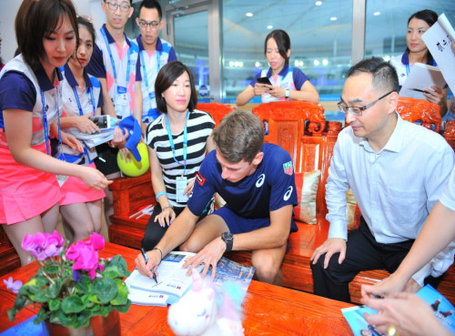 随后,首届珠海网球冠军赛男单冠军、20岁的澳大利亚选手德米纳尔来到了公司设于场馆三楼的空中观赛包房,与赵丽峰等进行互动,热情地在纪念册上签名,并与大家合影留念。